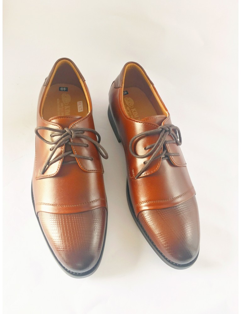 Giày da Kim Thành, thương hiệu độc quyền. Giày tây cột dây được thiết kế chỉ từ một mảnh da bò cao cấp nguyên bản, tạo cảm giác liền mạch và hoàn hảo đến từng chi tiết. Đây cũng chính là điểm đặc biệt làm nên điểm nhấn tinh tế rất riêng của mẫu giày này. Cấu tạo của phần đế cao su với những đường may tỉ mỉ và khéo léo, sở hữu các rãnh chống trơn trượt hiệu quả, giúp phái mạnh dễ dàng di chuyển và hoạt động. Giày tây nam thích hợp diện cùng âu phục (như suit, vest) để tham dự những sự kiện quan trọng, làm việc công sở.