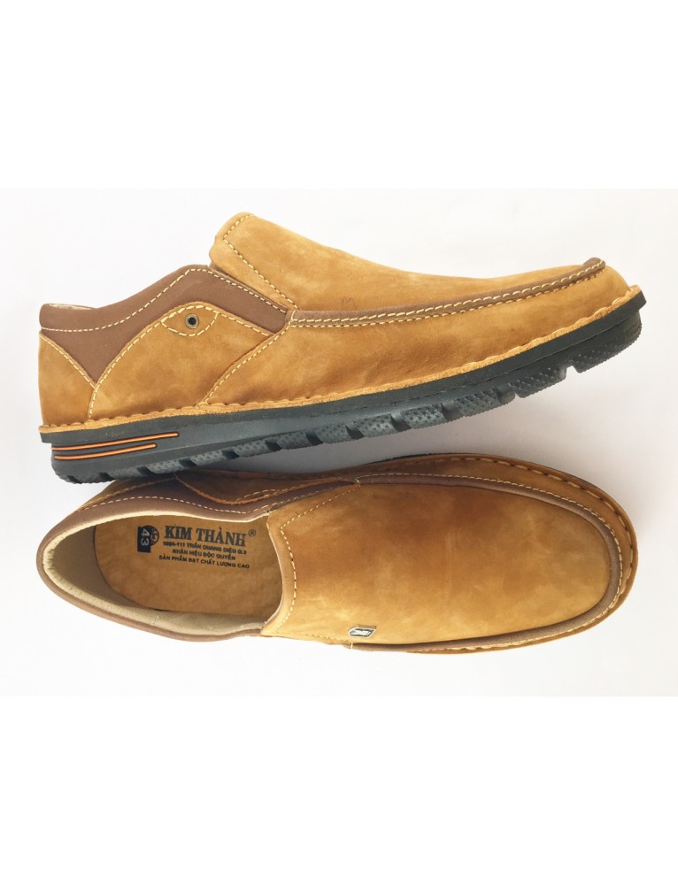 Giày da Kim Thành, thương hiệu độc quyền. Giày tây mọi xỏ được thiết kế chỉ từ một mảnh da cấp nguyên bản, tạo cảm giác liền mạch và hoàn hảo đến từng chi tiết. Đây cũng chính là điểm đặc biệt làm nên điểm nhấn tinh tế rất riêng của mẫu giày này. Cấu tạo của phần đế cao su với những đường may tỉ mỉ và khéo léo, sở hữu các rãnh chống trơn trượt hiệu quả, giúp phái mạnh dễ dàng di chuyển và hoạt động. Giày mọi xỏ rất sang trọng cho phái nam tham dự các sự kiện, du lịch, công sở.