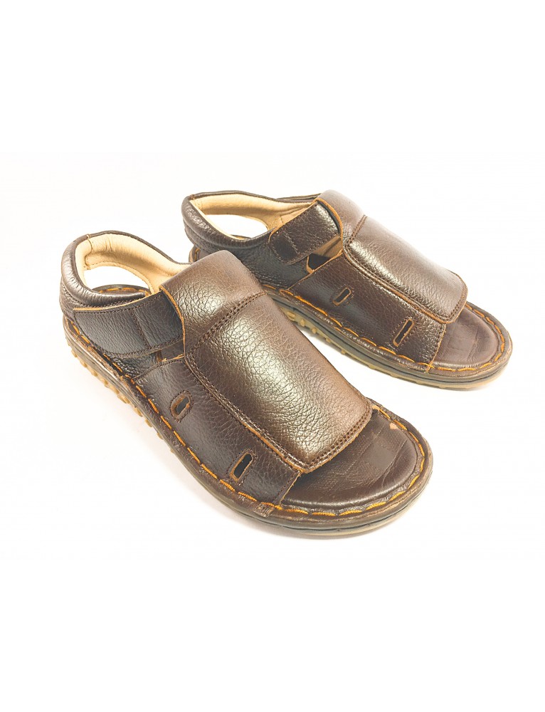 Giày sandal nam Kim Thành, thương hiệu độc quyền được làm từ chất liệu da bò bền, đẹp. Phần dán cố định giúp người dùng dễ mang sản phẩm và không mất quá nhiều thời gian cho việc điều chỉnh quai hậu. Thiết kế đơn giản với những lỗ trống thông thoáng. Ngoài ra, những đường chỉ may theo hình ô vuông chắc chắn hay sử dụng khoen tròn thời trang không rỉ sét. Đế cao cấp bền êm chân .Bạn có thể mang sandal để đi dạo phố, đi học, đi làm, du lịch.
