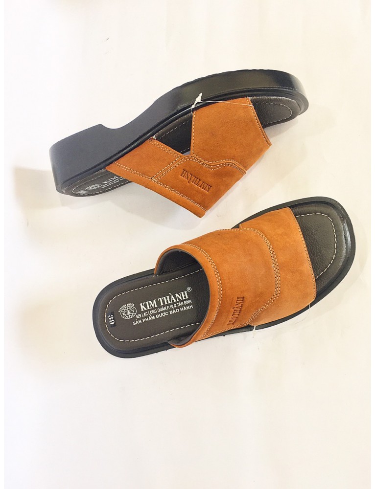 Dép nam Kim Thành, thương hiệu độc quyền được làm bằng chất liệu da bò cao cấp tạo sự êm ái. Thiết kế tinh xảo ôm sát giúp bàn chân thoải mái,chống trơn trượt, tạo sự êm ái và nhẹ nhàng khi di chuyển. Kiểu dép nam luôn được ưa chuộng vì bền, đẹp, dễ dàng kết hợp với các loại trang phục đa dạng, mà không phải lo lắng về thời tiết.