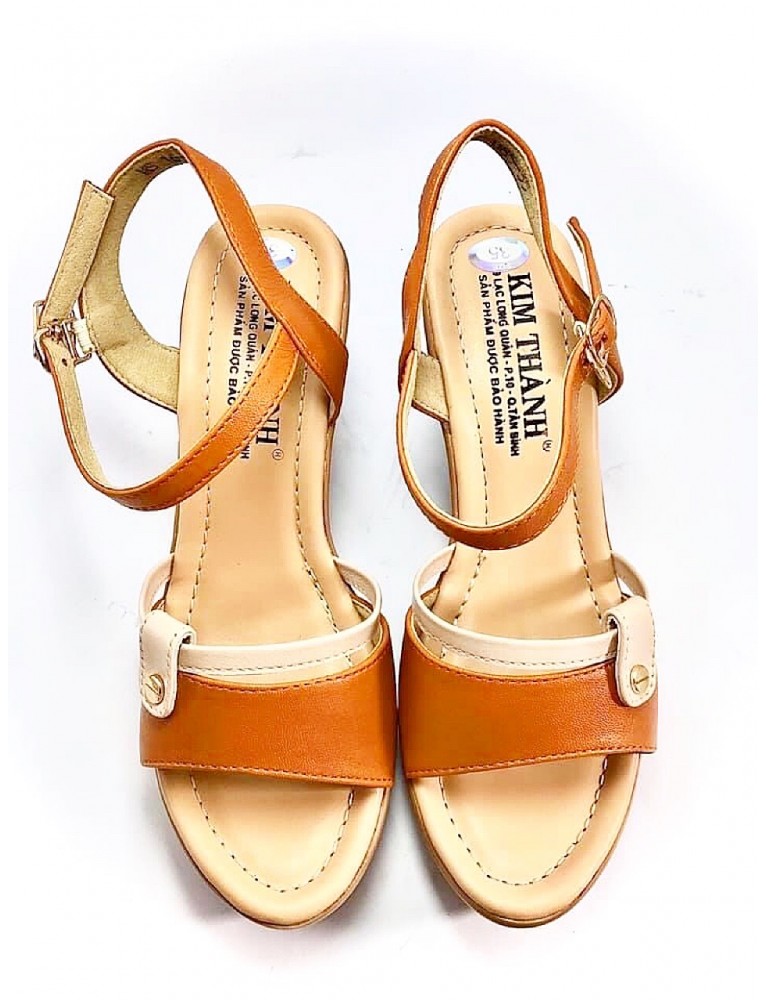 Giày sandal Kim Thành với thiết kế đơn giản nhưng vô cùng tinh tế. Phần quai da với điểm nhấn là đường chỉ ziczac chắc chắn mang lại vẻ đẹp năng động mà vẫn không kém phần thanh lịch. Đế với độ cao 10cm . Đế PU nên rất nhẹ vừa đủ để giúp bạn tự tin. Với mẫu giày sandal này, phái nữ không cần mất nhiều thời gian cho việc phối đồ bởi nó có thể phù hợp với hầu hết các phong cách trang phục khác nhau.